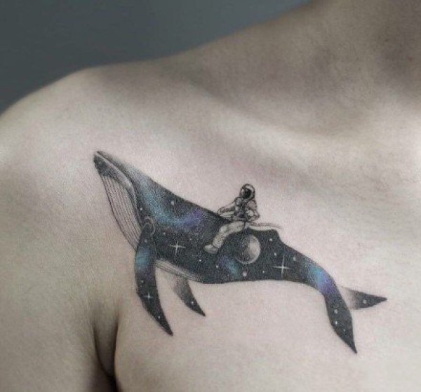 9张唯美的星空和鲸鱼搭配的纹身图案