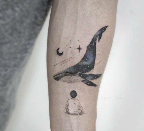 9张唯美的星空和鲸鱼搭配的纹身图案