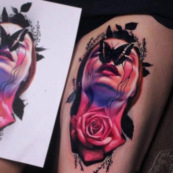 很有创意的人物肖像彩色纹身图