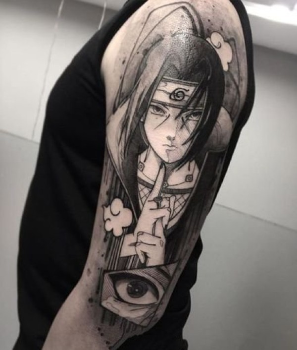 手臂上的火影忍者鸣人佐助卡卡西等角色动漫纹身图案