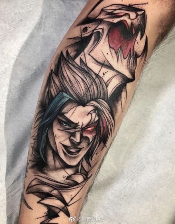一组手臂和小腿上的动漫人物纹身图案欣赏