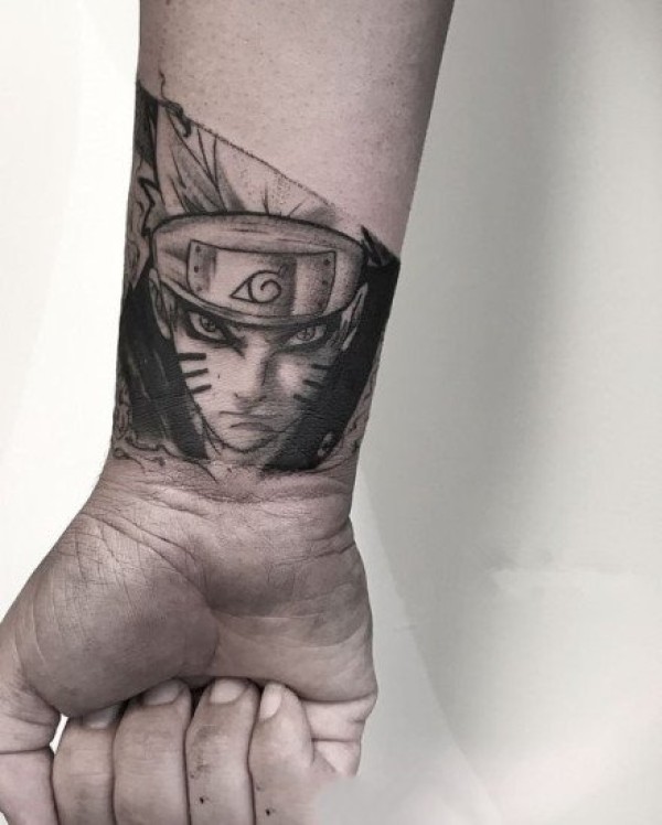 手臂上的火影忍者鸣人佐助卡卡西等角色动漫纹身图案