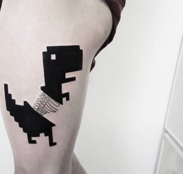德国恐龙纹身 女生大腿上德国恐龙纹身图片