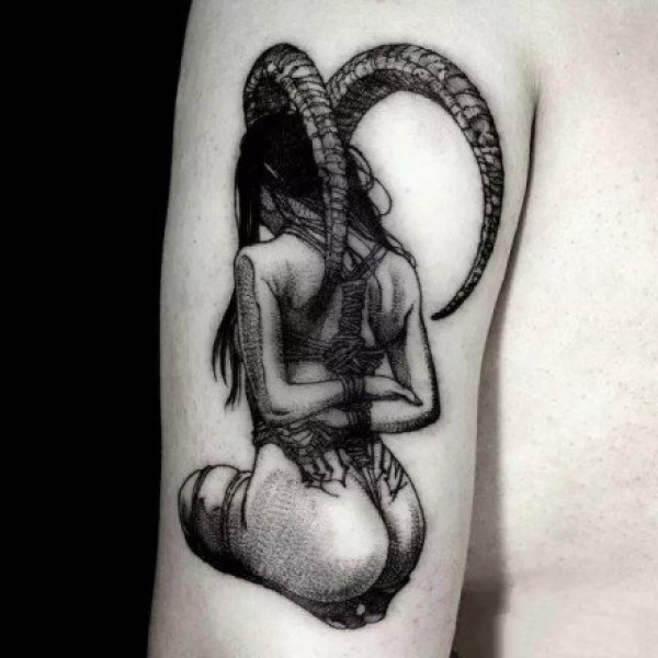 适合白羊座的一组暗黑创意羊纹身图