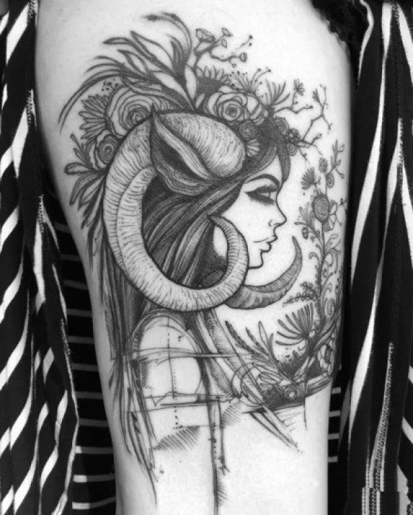 个性时尚腰部狮子座白羊座射手座纹身图片