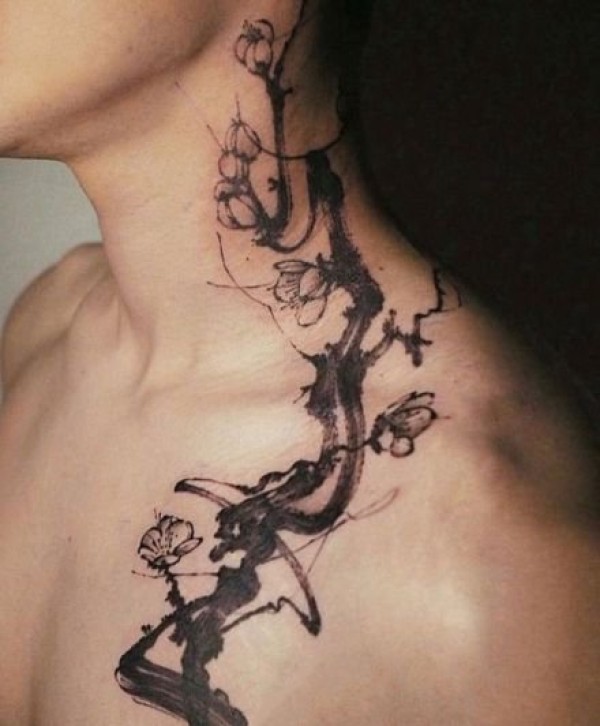 中国风后背水墨梅花纹身