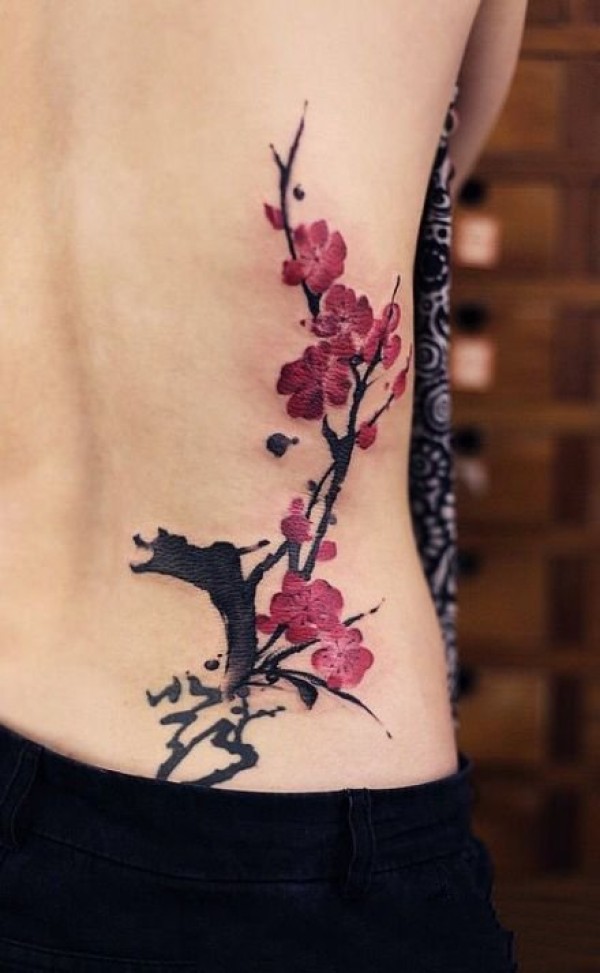 中国风后背水墨梅花纹身