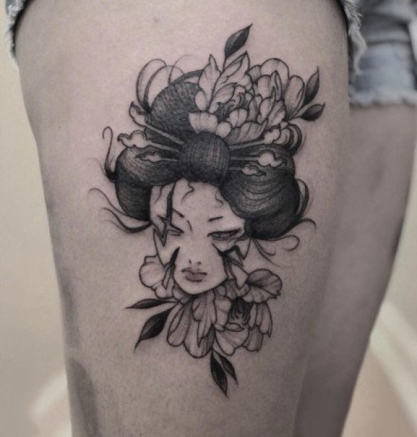 艺伎纹身--一组独特创意的日式艺妓纹身图案作品