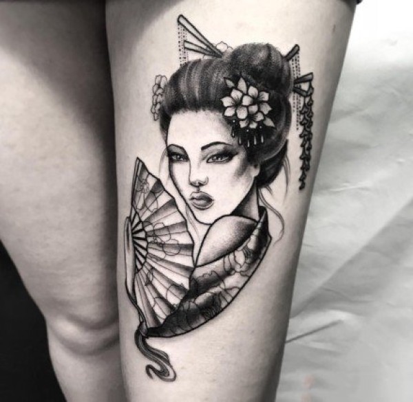 18张各种风格的艺伎纹身图案欣赏