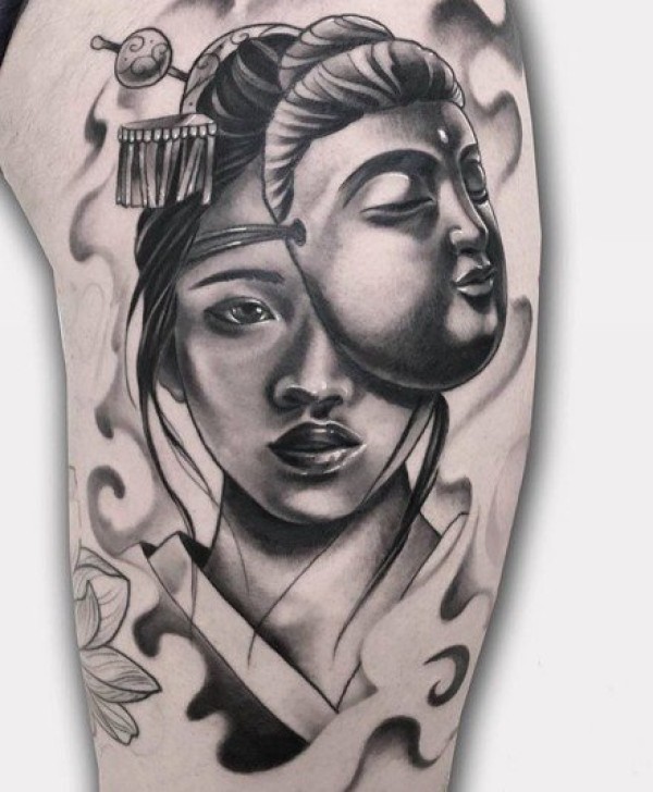 艺伎纹身--一组独特创意的日式艺妓纹身图案作品
