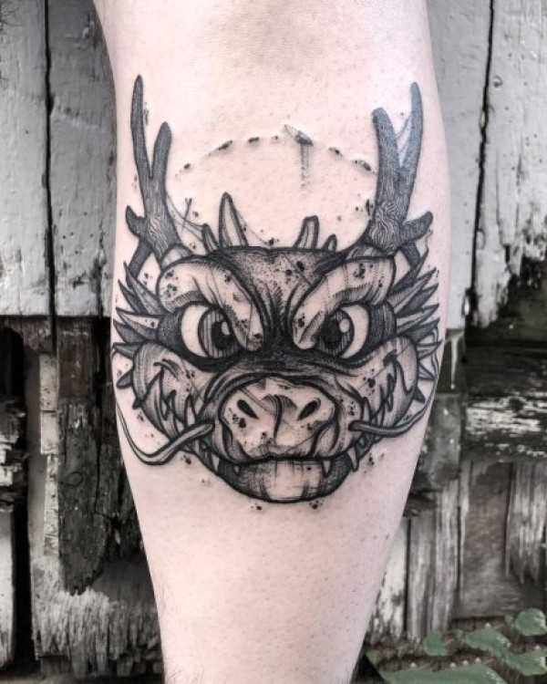 龙纹身手稿_一组老传统黑灰龙手稿纹身图案