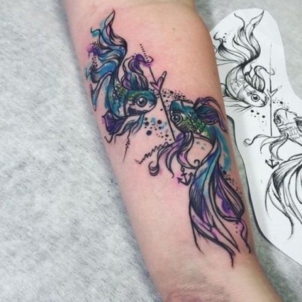 双鱼座纹身手稿_45张十二星座之双鱼手稿纹身图案
