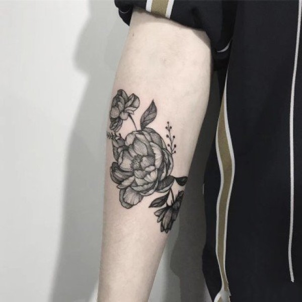 心脏纹身图案 女生手臂上黑灰纹身心脏纹身图案