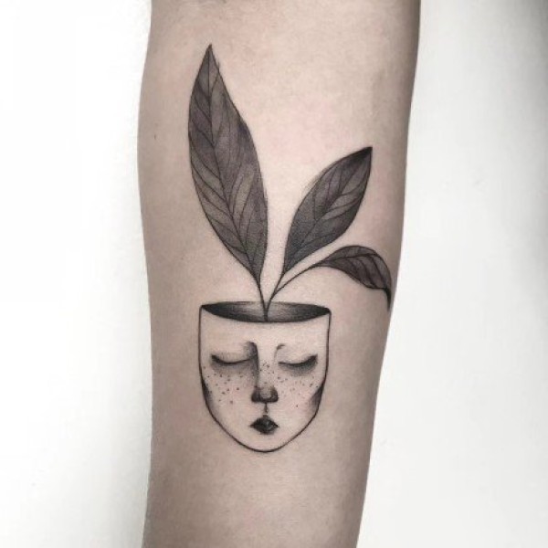 心脏纹身图案 女生手臂上黑灰纹身心脏纹身图案