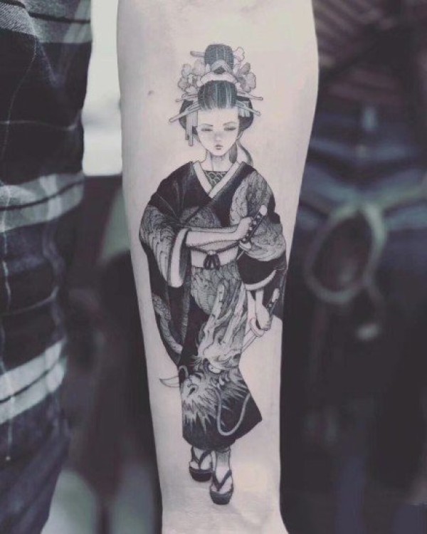 手臂艺伎:9张纹在胳膊上的花旦艺伎纹身图案