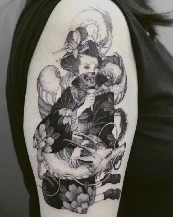 18张各种风格的艺伎纹身图案欣赏