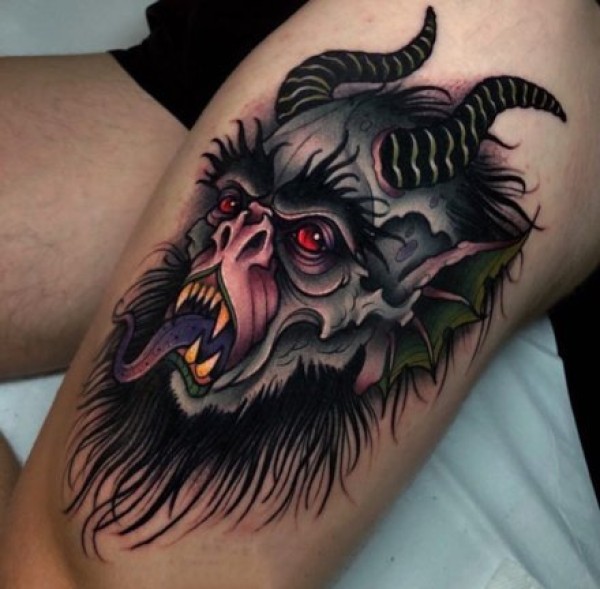 恶魔纹身简单 多款黑灰纹身点刺技巧大恶魔纹身图案