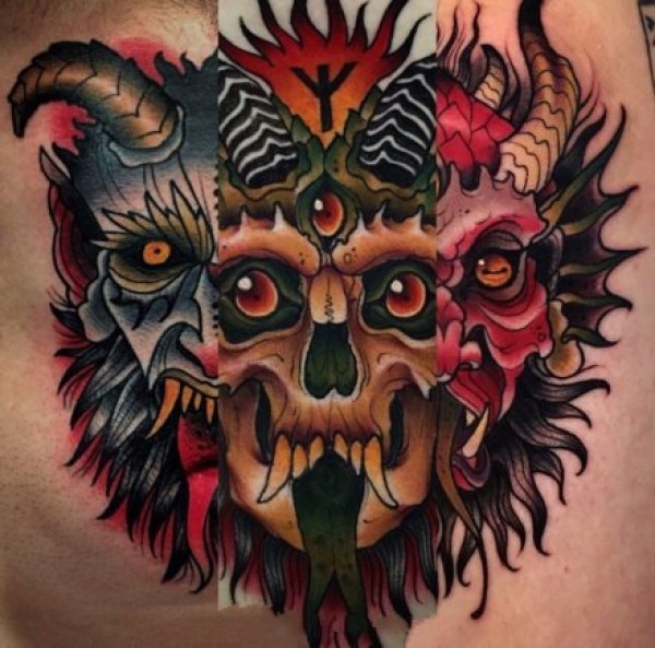 恶魔纹身简单 多款黑灰纹身点刺技巧大恶魔纹身图案
