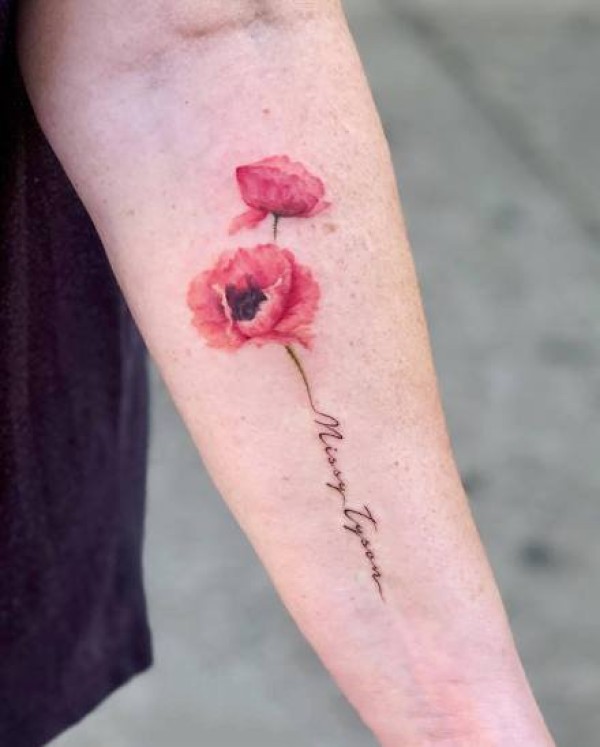 罂粟花纹身图--几张红色艳丽的唯美罂粟花纹身图案作品