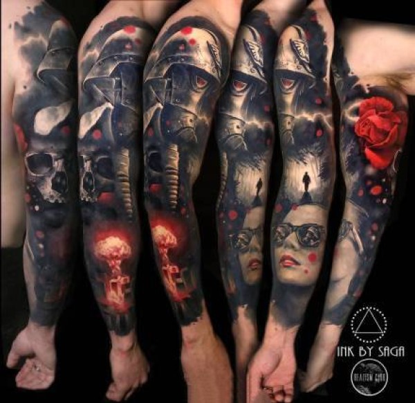 欧美花臂纹身_22张霸气黑灰欧美大黑花臂纹身图案作品图片