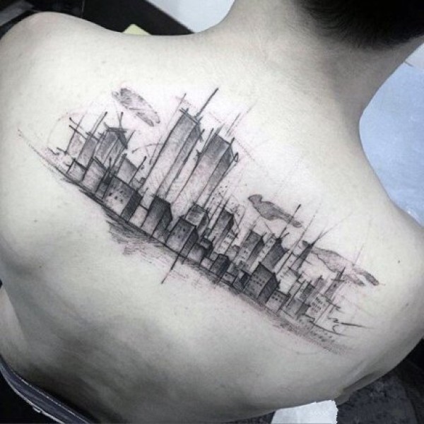 教堂建筑纹身_一组欧美教堂建筑房屋的纹身图案作品图片