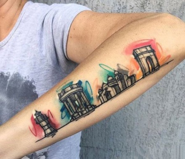 一组城市建筑的天际线纹身图案