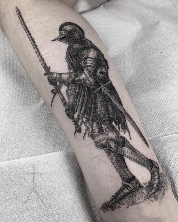 神秘的彩绘渐变抽象线条火焰和人物幽灵骑士纹身图案