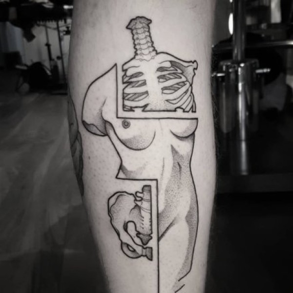 两幅面孔拼接组成的创意纹身图