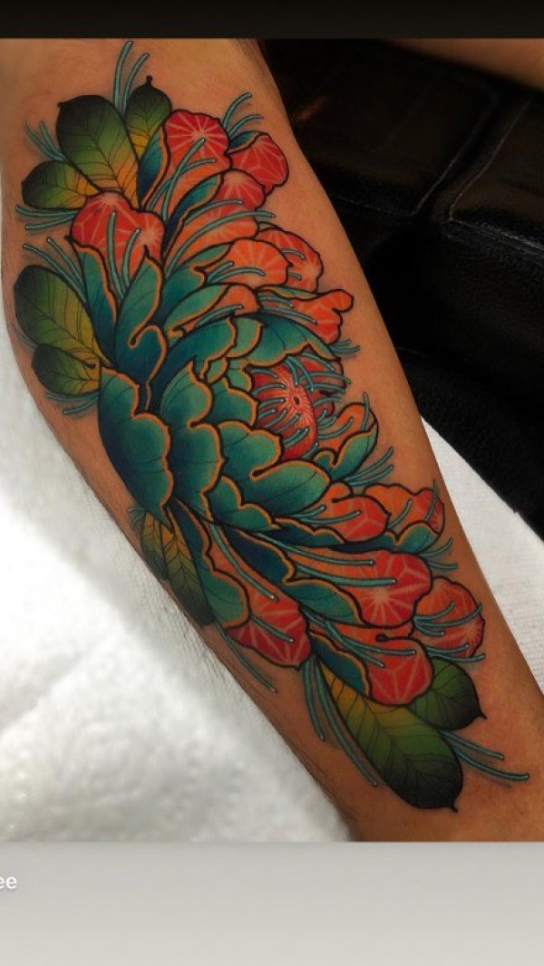 适合女性的一组炫彩牡丹纹身图案9张