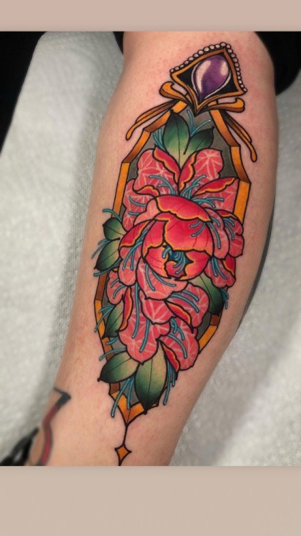 传统彩色牡丹纹身图案手稿图片