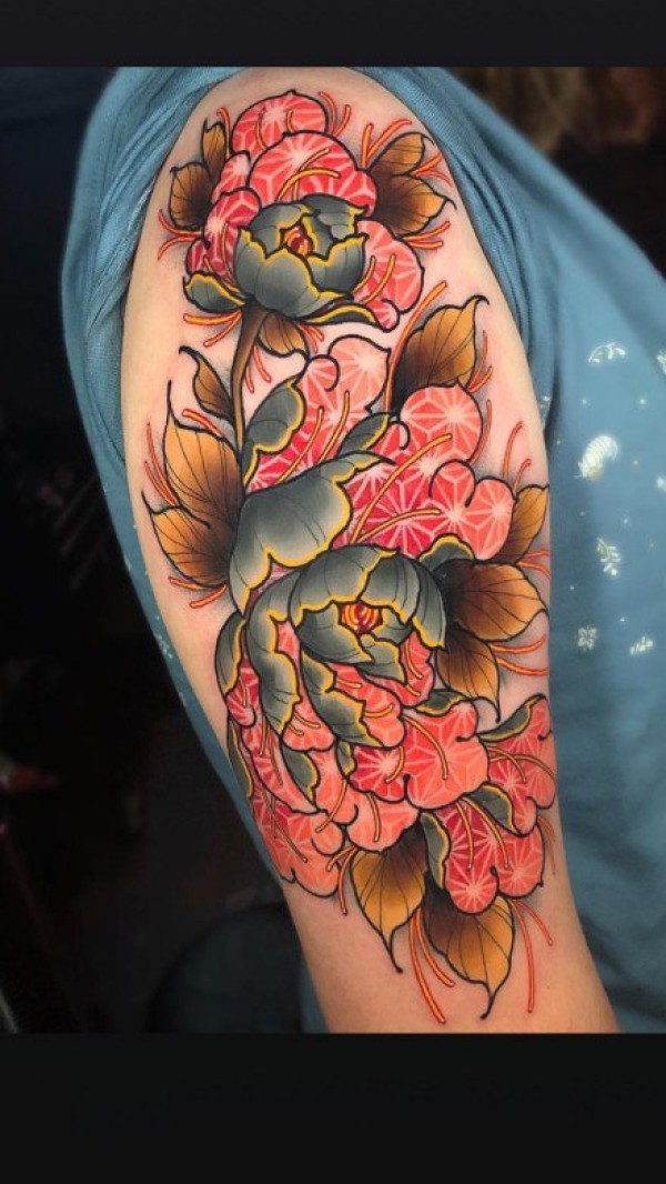 纹身小牡丹 黑色调却不失华贵的牡丹纹身图案