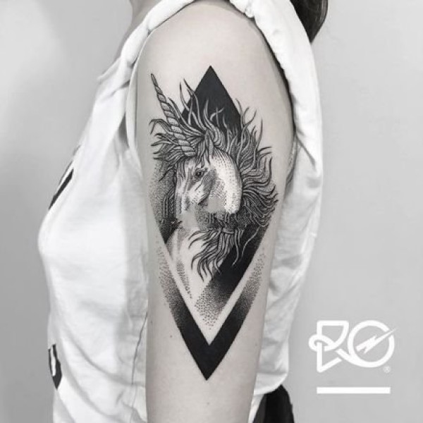 超有范的欧美风大臂黑灰点刺纹身图案