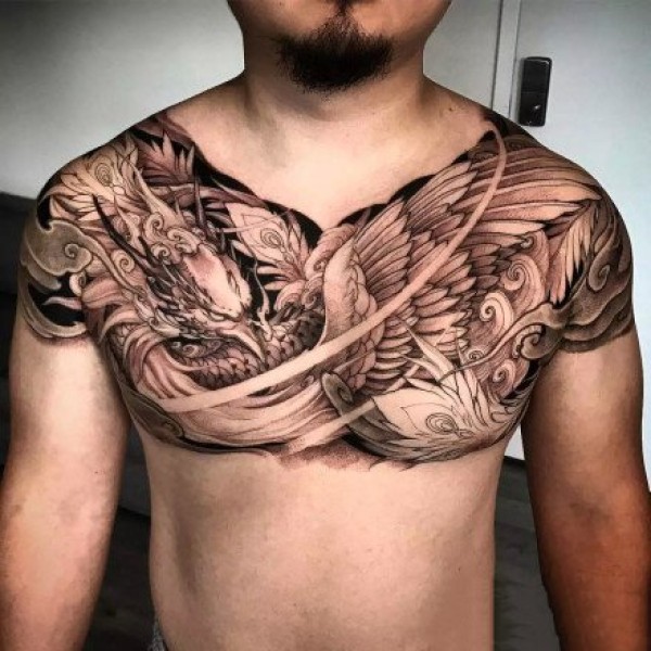 花胸纹身--一组男性霸气的大花胸纹身图案作品欣赏
