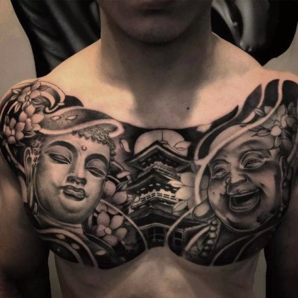 花胸纹身--一组男性霸气的大花胸纹身图案作品欣赏
