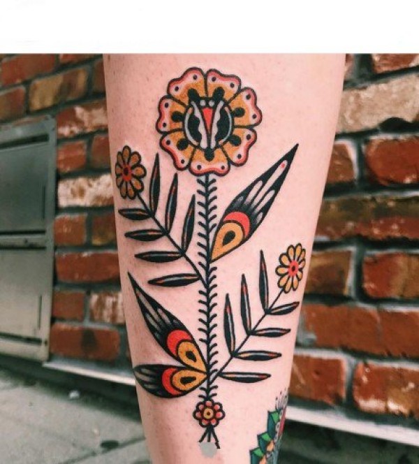 oldschool风格的太阳花主题纹身图片