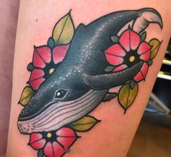 萌萌的鲸鱼纹身--适合女生的小清新鲸鱼纹身图案作品