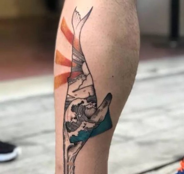 9张漂亮的水彩色鲸鱼纹身图案作品
