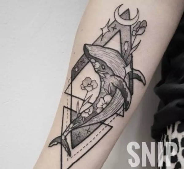 9张唯美的星空和鲸鱼搭配的纹身图案