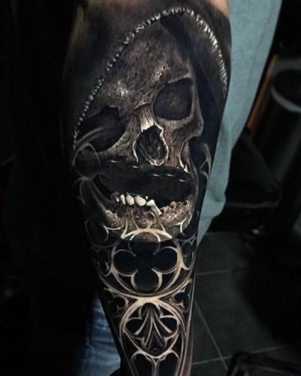 个性手臂悲伤的骷髅纹身图案图案图片_骷髅纹身图案大全_纹身图吧