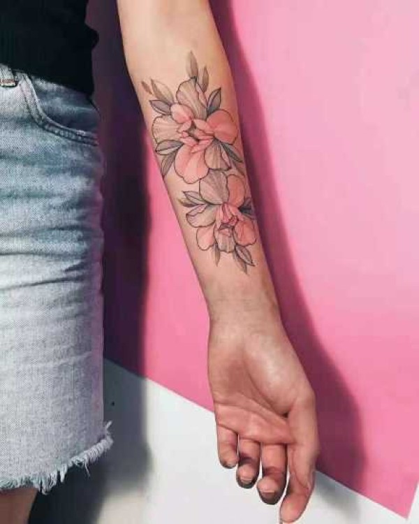 手臂牡丹花纹身