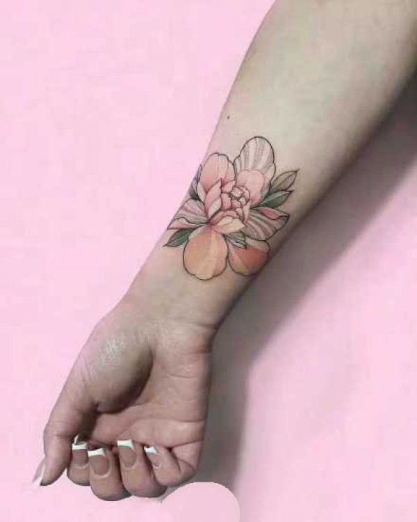 好看的女生粉彩色牡丹花纹身图案