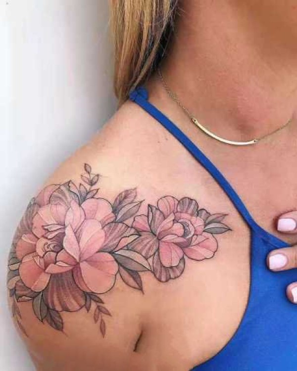 古典精致的彩色花臂牡丹花艺妓海浪纹身图案