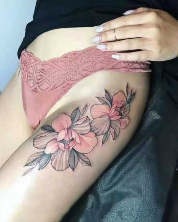 好看的女生粉彩色牡丹花纹身图案