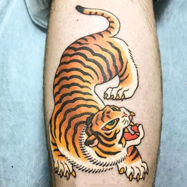 男性们都喜欢这样帅气的凶猛的老虎纹身图案