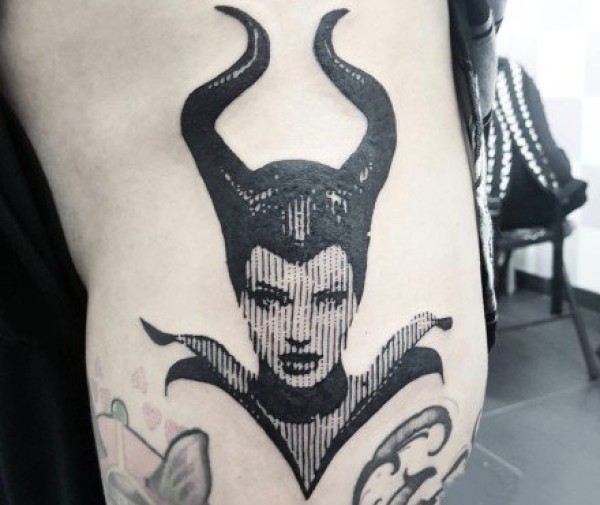 暗黑系风格的小女郎头像纹身图案欣赏