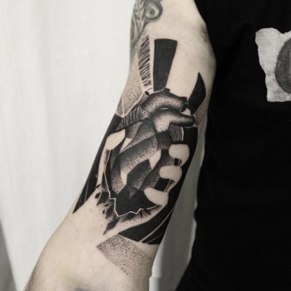 心脏纹身图案 女生手臂上黑灰纹身心脏纹身图案