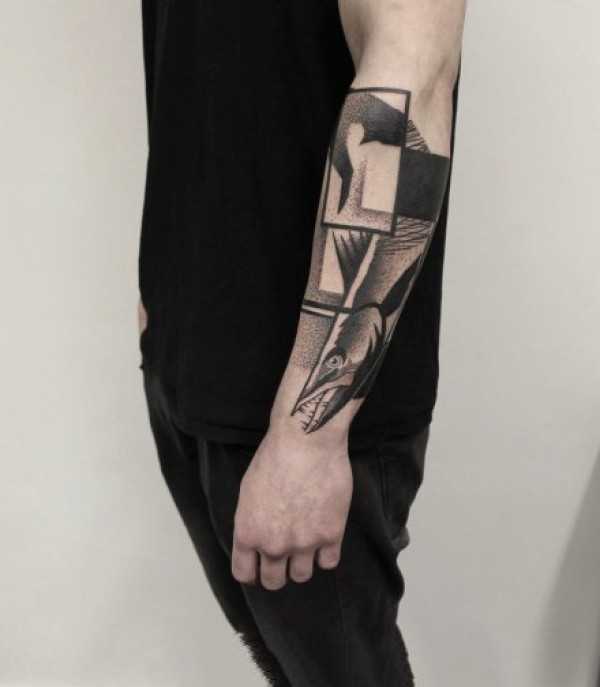 25款男性黑色手臂线条纹身点刺技巧半甲纹身图案