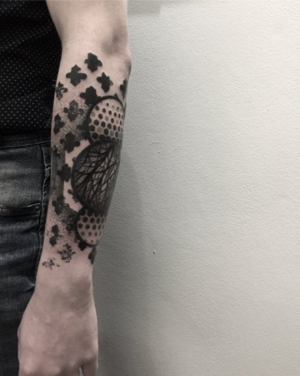 25款男性黑色手臂线条纹身点刺技巧半甲纹身图案