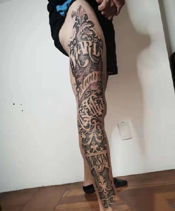 花体字纹身--一组男性漂亮的花体字纹身图案