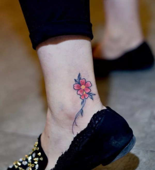 脚踝处的小清新彩色花朵纹身图片